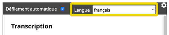 Utilisez la liste déroulante « Langue » pour sélectionner la transcription.